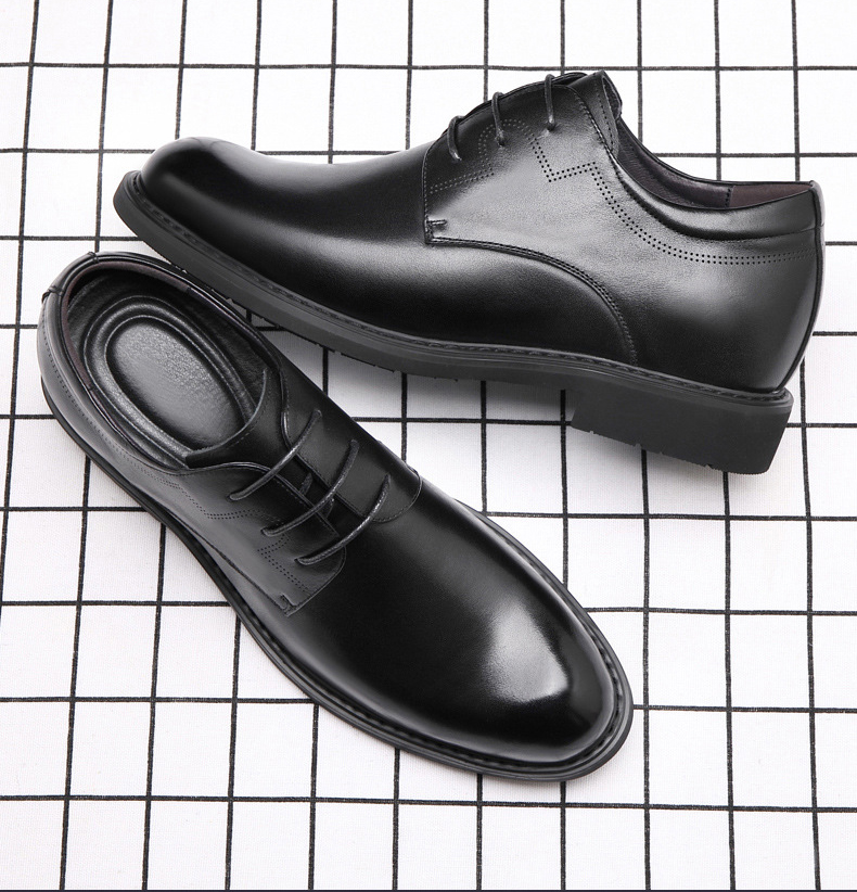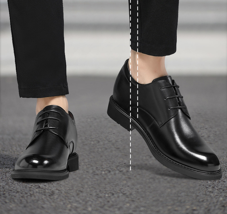 Black Business Dress Shoes Invisible Height Increase Insoles