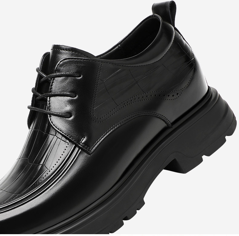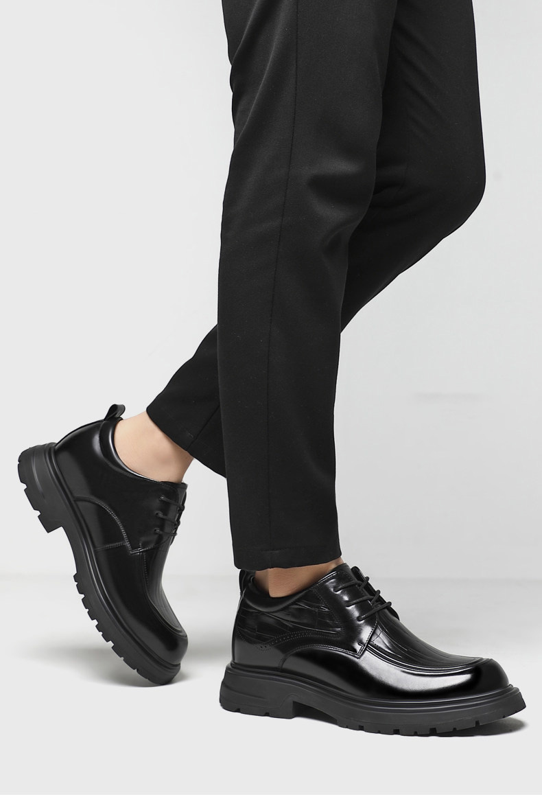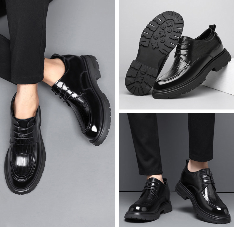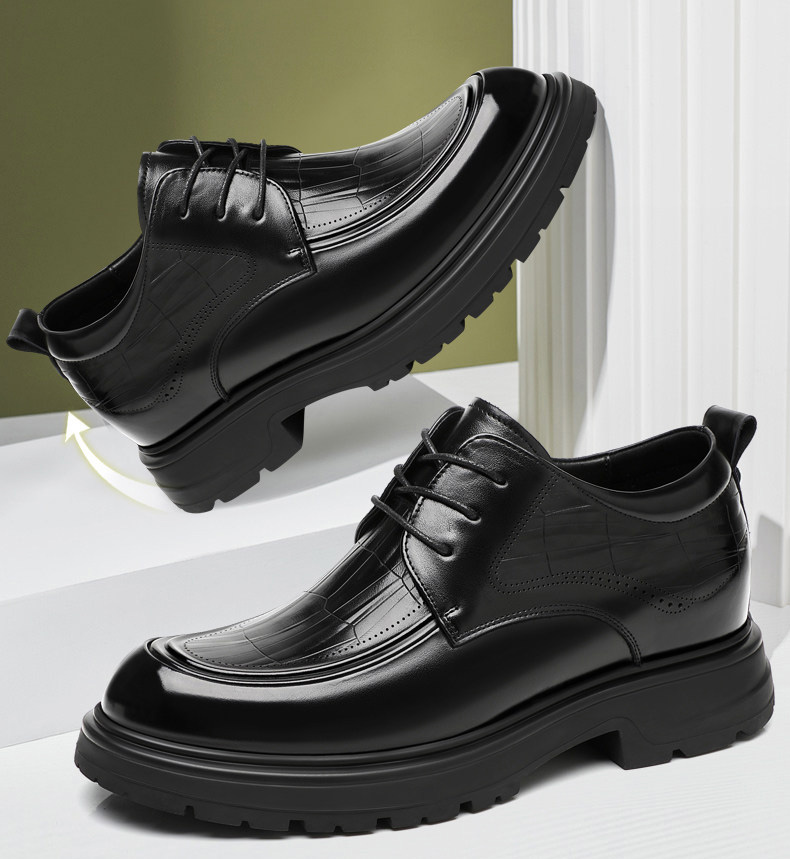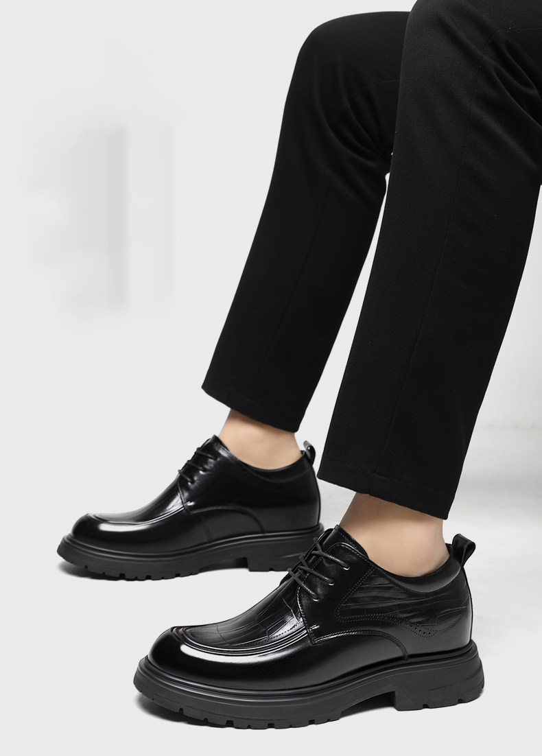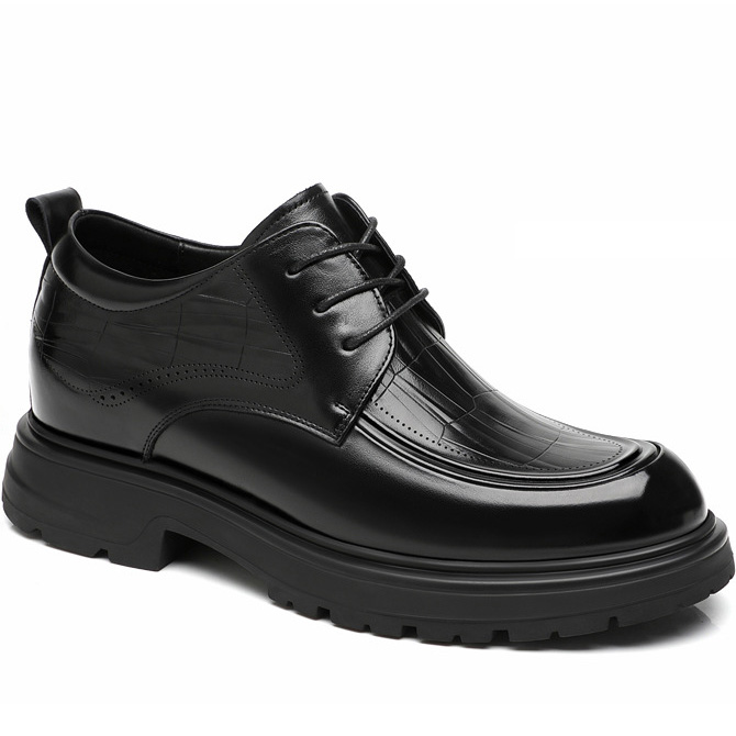 Black Genuine Leather Moc Toe Derby Height Increasing Shoes