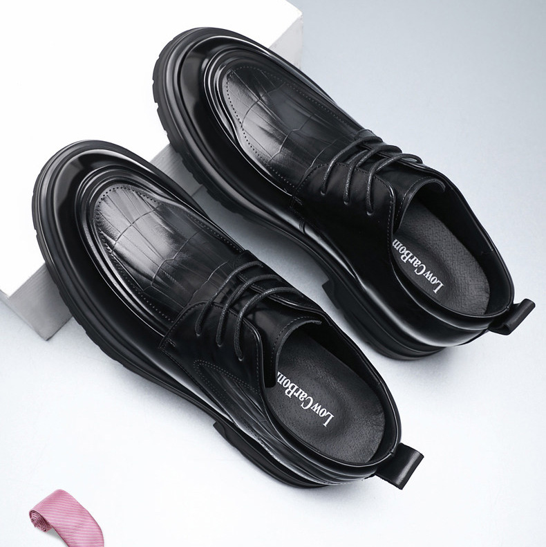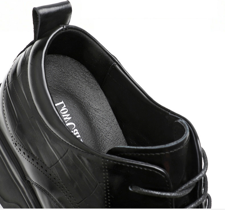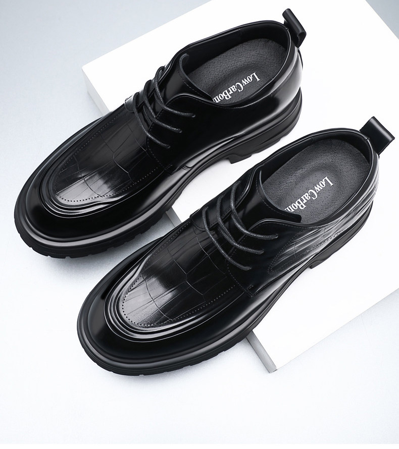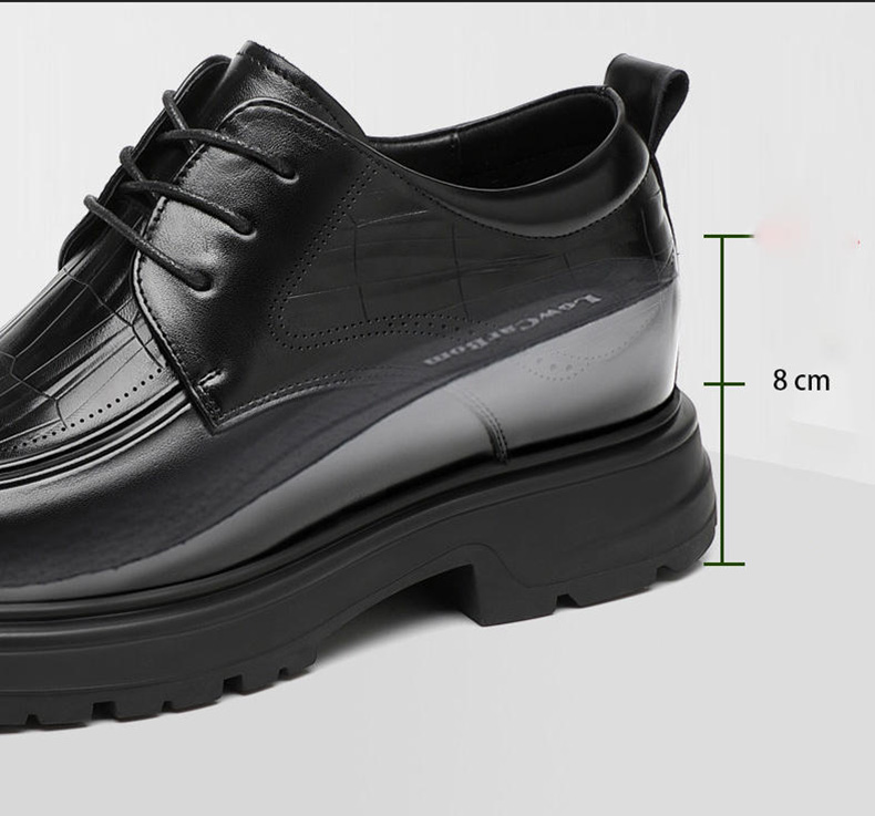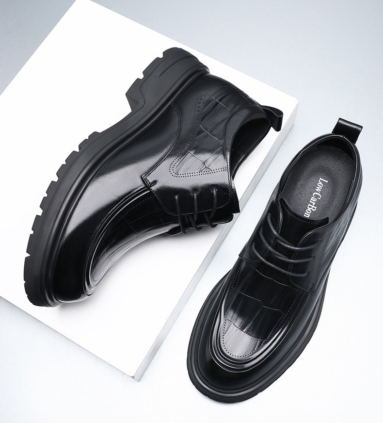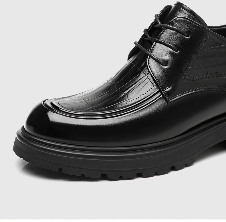 Black Genuine Leather Moc Toe Derby Height Increasing Shoes