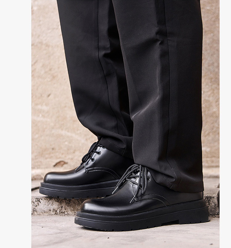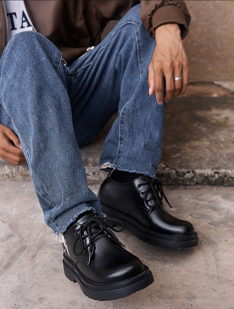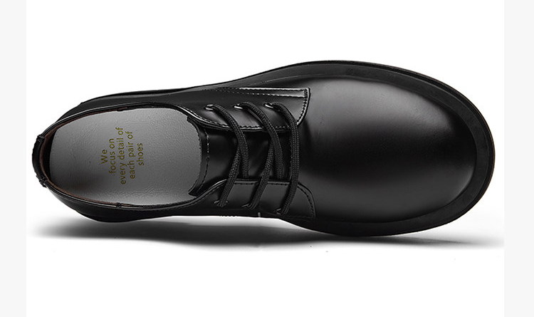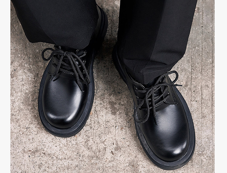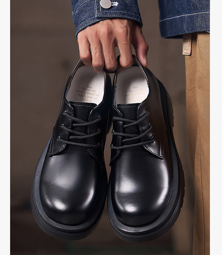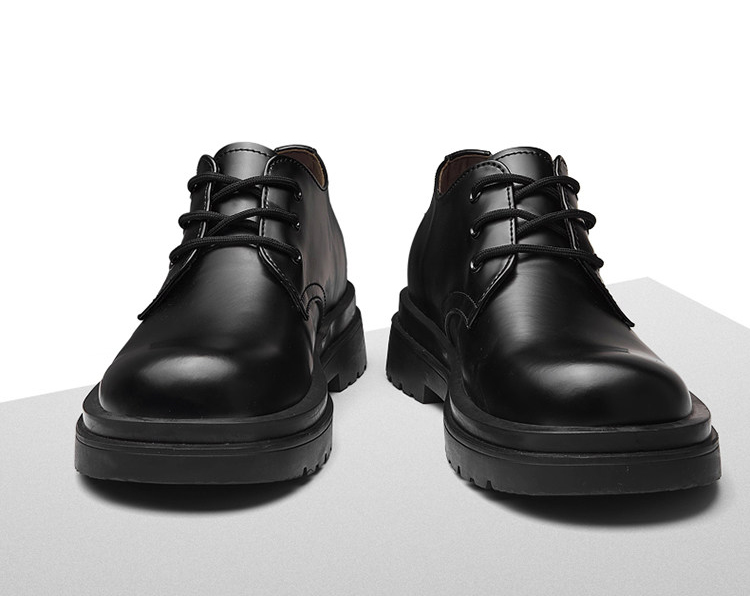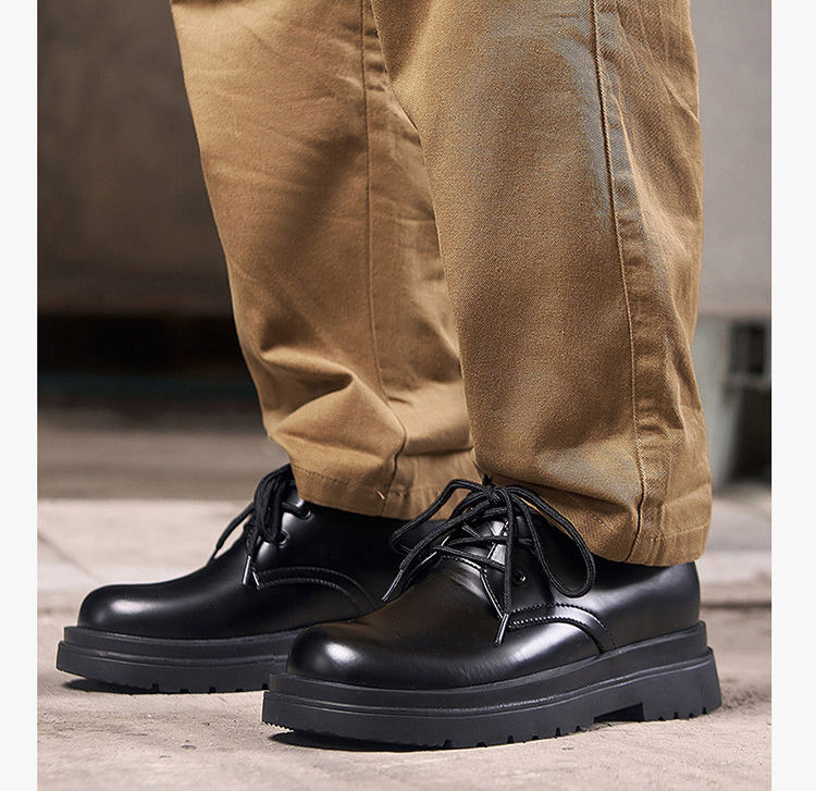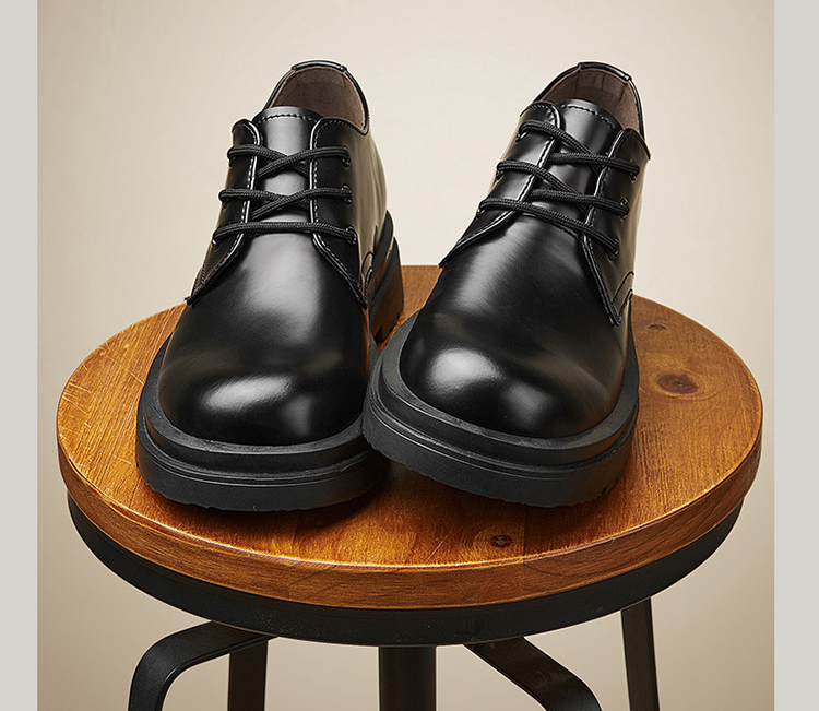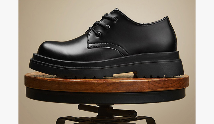 The upper of these thick-soled men’s oxford shoes is made of comfortable cowhide leather fabric. The upper is soft, with fine texture and clear texture. It is processed to form a smooth upper with a shiny appearance, giving people a fashionable and noble feeling.