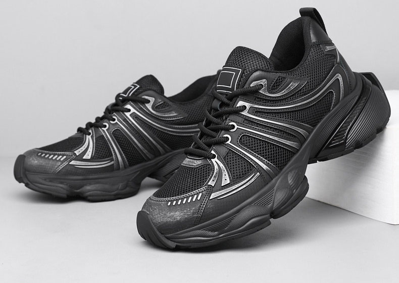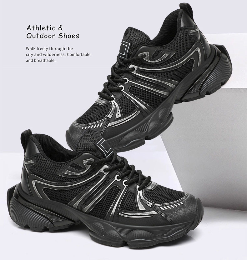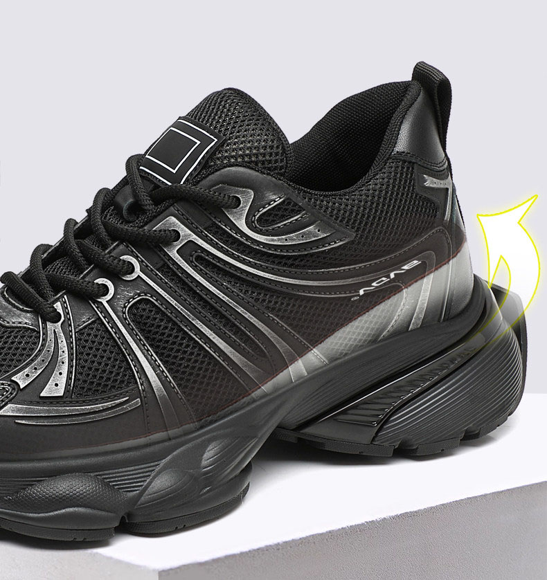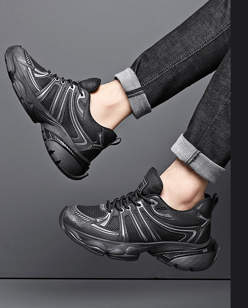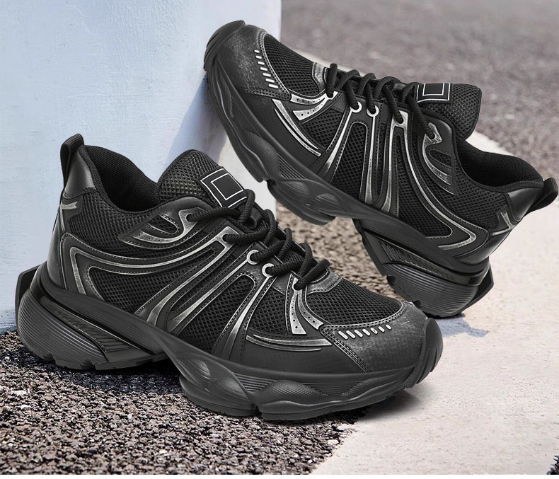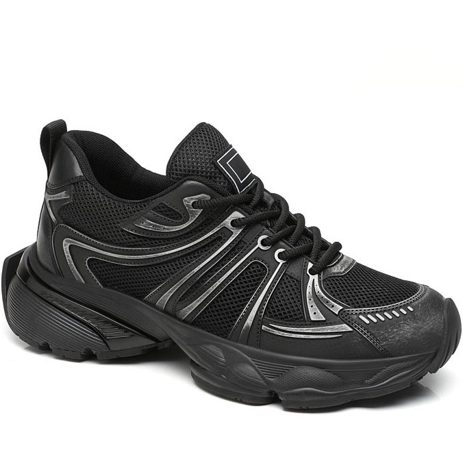 Black Mesh Synthetic Leather Dad Shoes that Increase Height