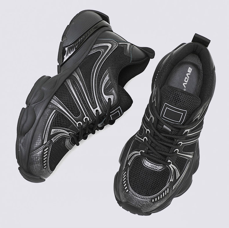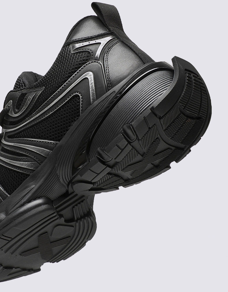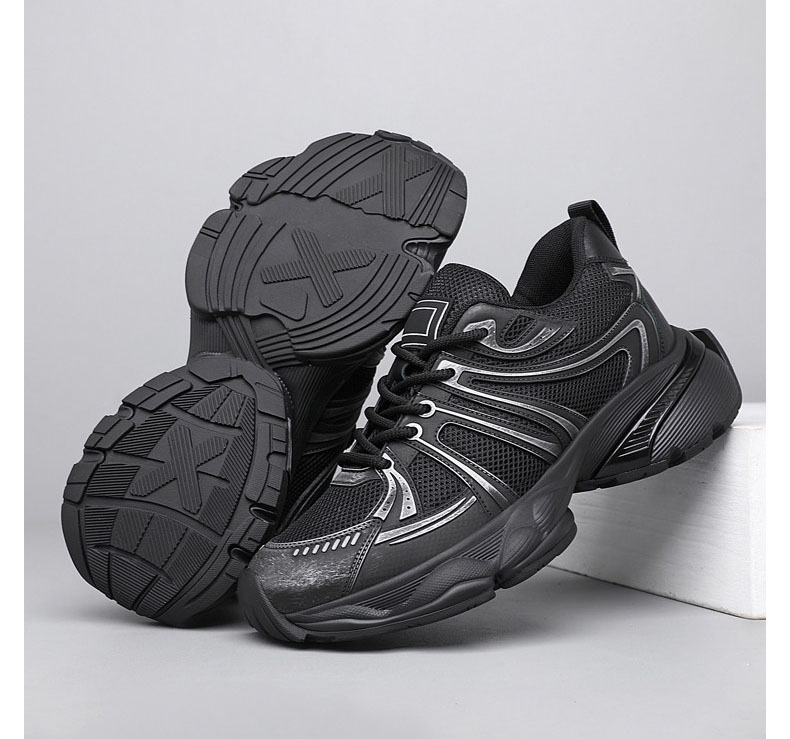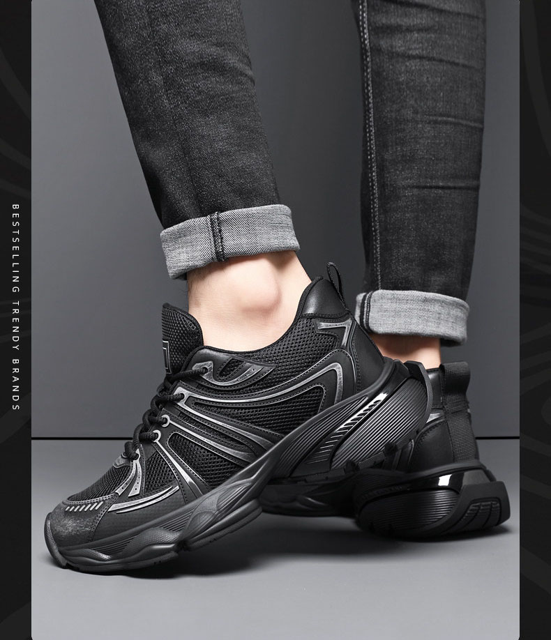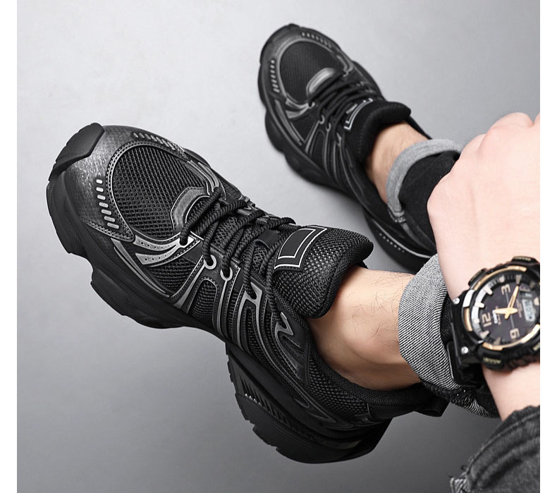 Black Mesh Synthetic Leather Dad Shoes that Increase Height
