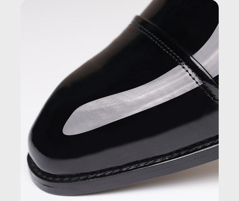 The slip on makes it easy to put on and take off, neat stitching enhances the durability of the shoe, and the smooth patent leather and patchwork upper make this dress shoe fashionable and versatile, giving you confidence.