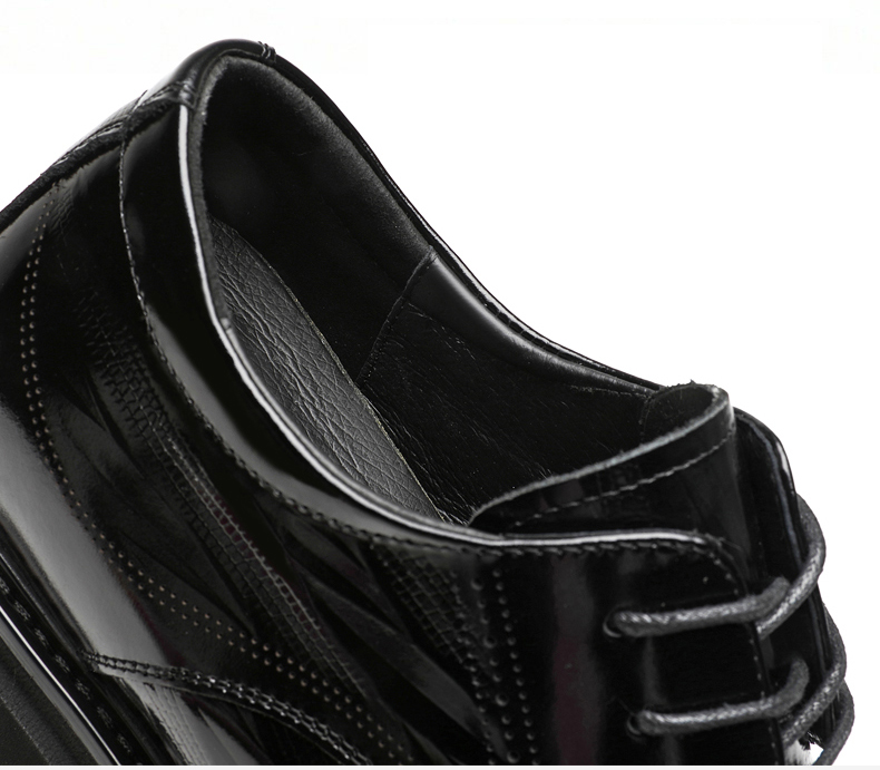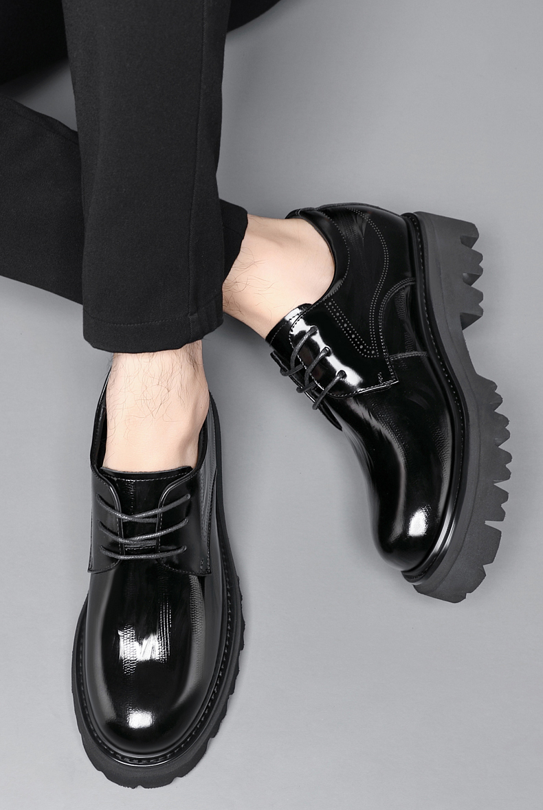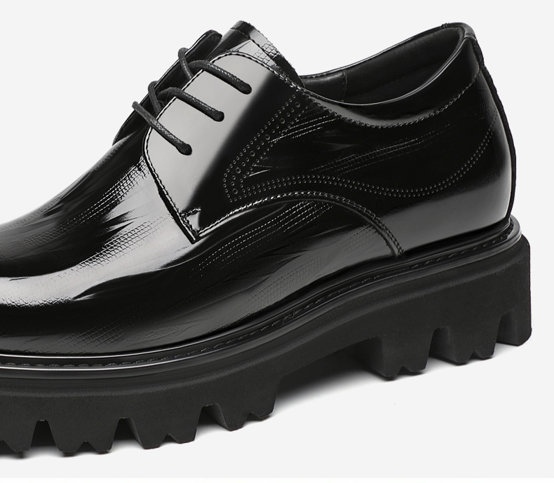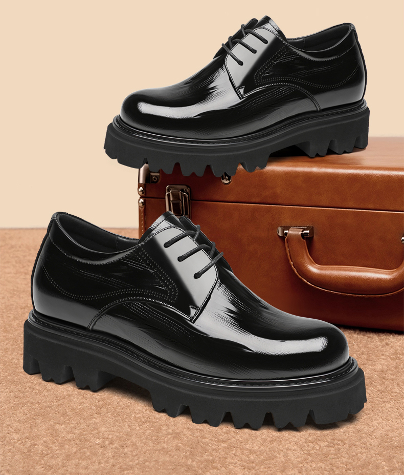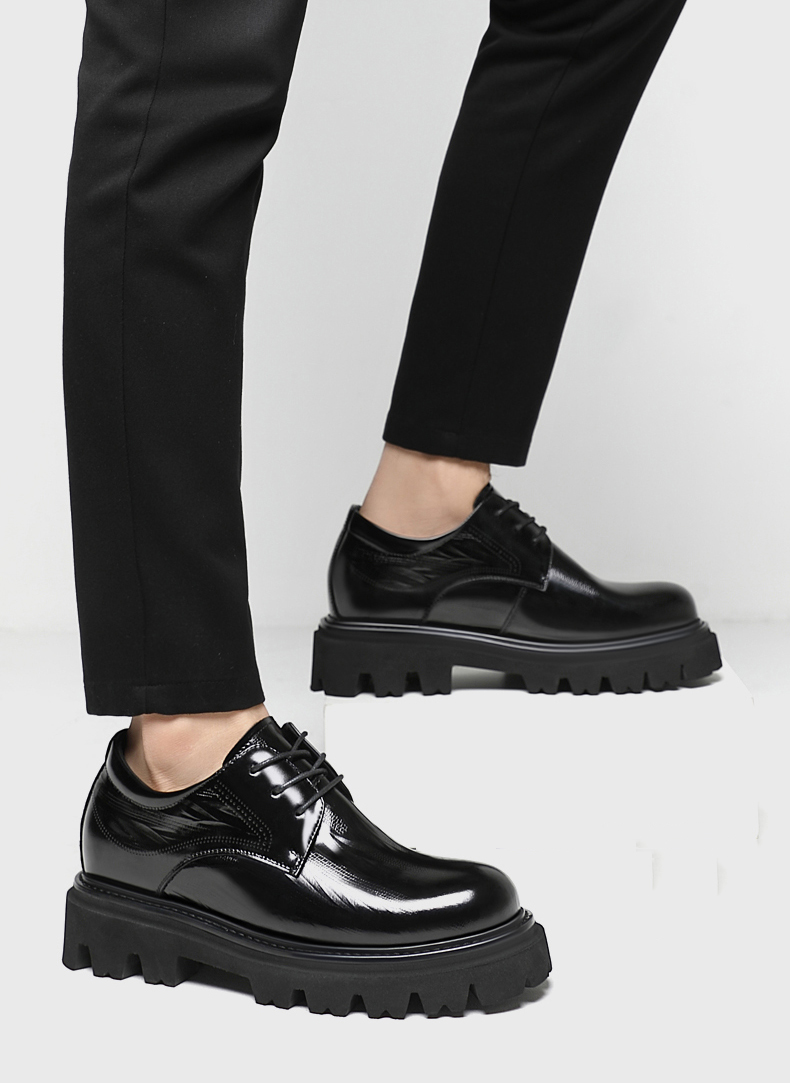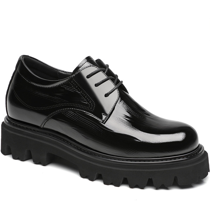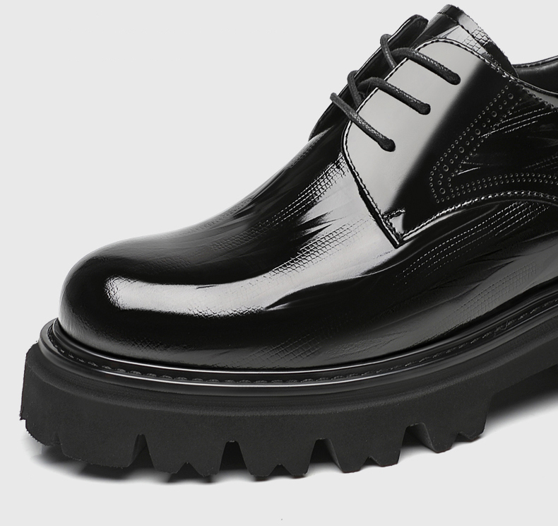 Black Thick Sole Patent Leather Derby Shoes That Add Height