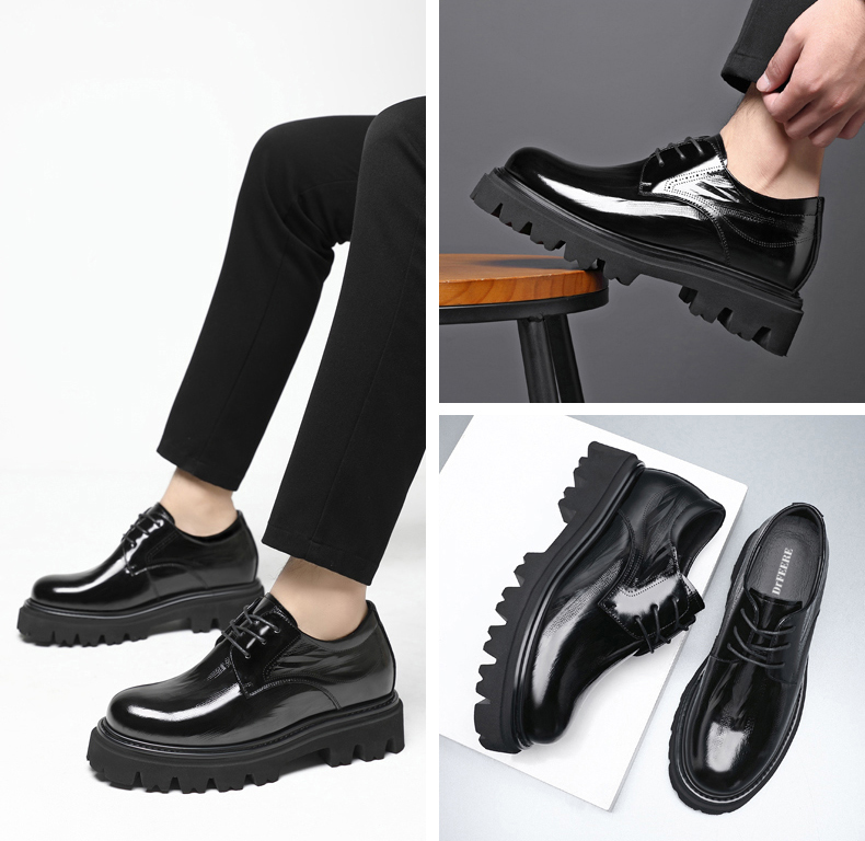 Be the first to review “Black Thick Sole Patent Leather Derby Shoes That Add Height” Cancel reply