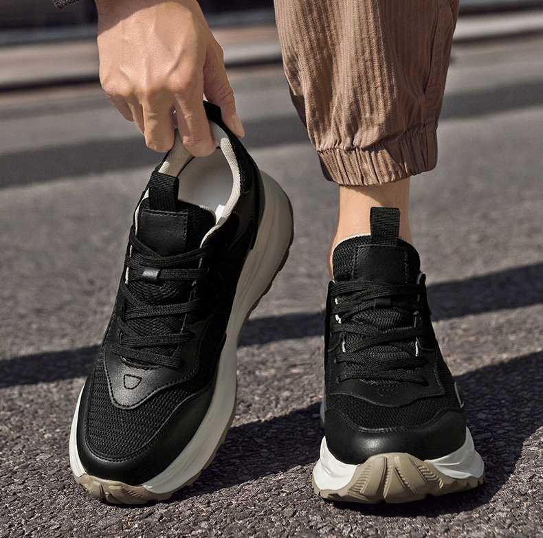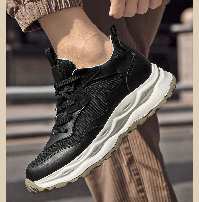 Chunky elevator shoes are breathable chunky shoes with a hidden heel that discreetly adds 3.1 inches (8 cm) to your height, offering a perfect combination of comfort and modern design for any occasion.