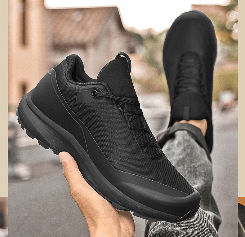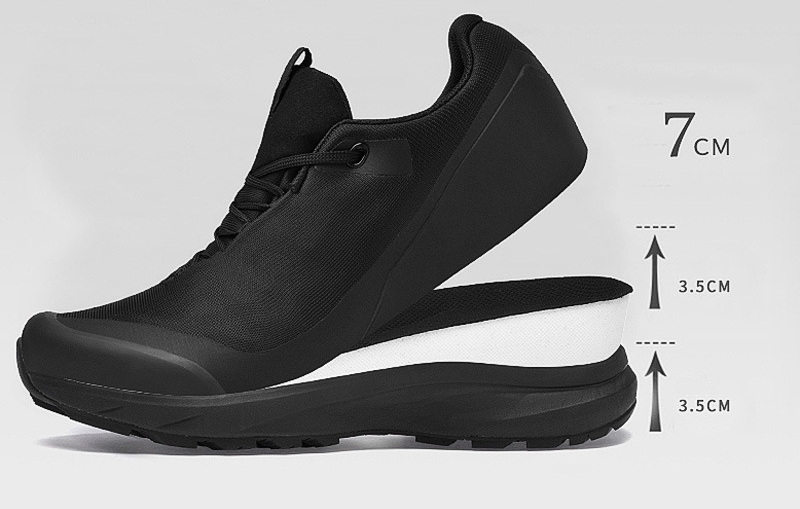 Stay agile and sure-footed even on shifting terrain with the lightweight, durable, and supportive comfort of the all black walking shoes height enhancing shoes