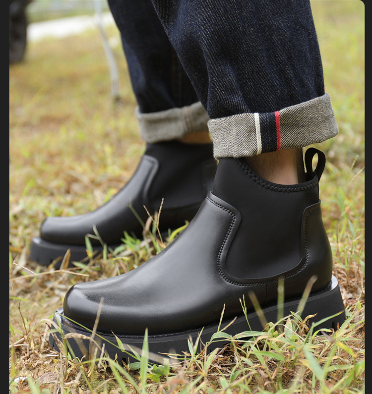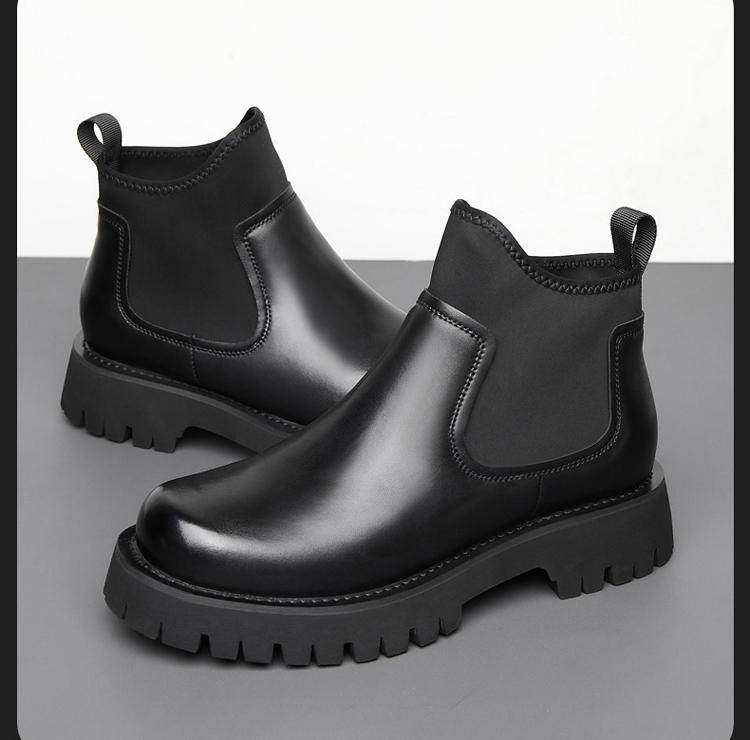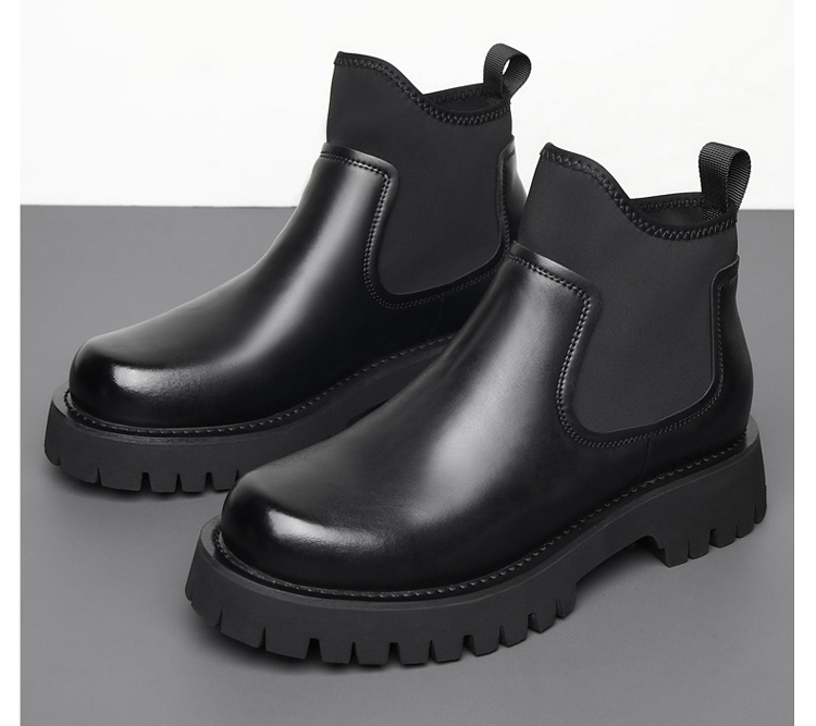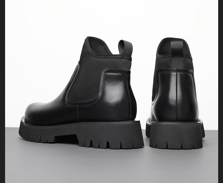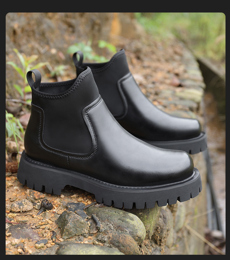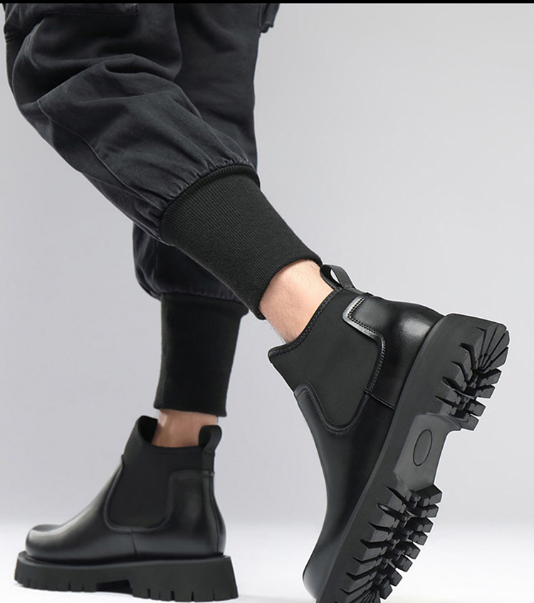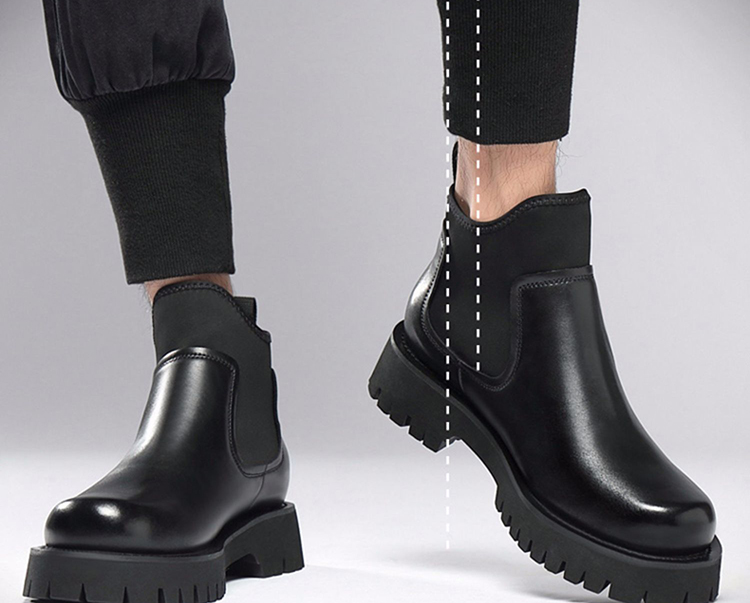 Mens Black Leather Ankle Boots Hidden Height Shoes