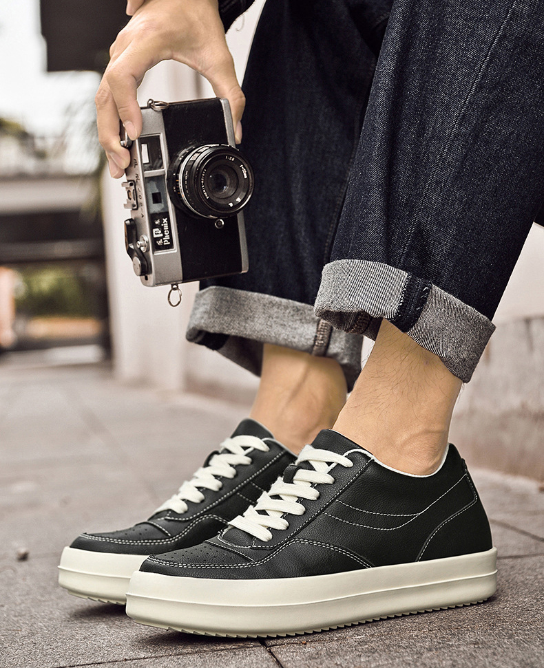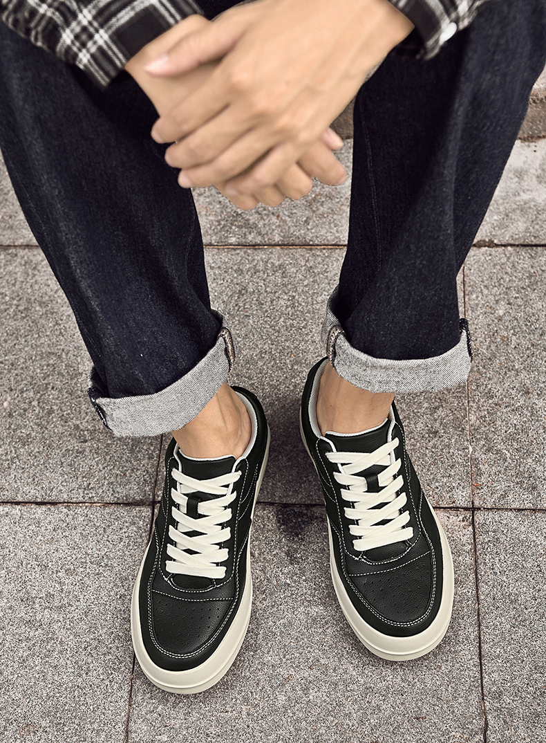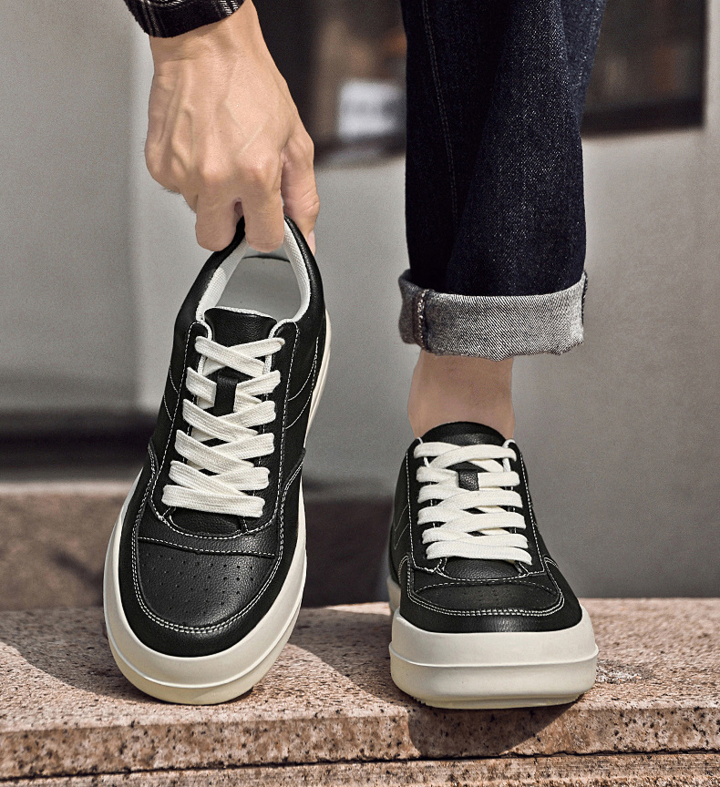 Mens Classic Leather Sneakers Height Boosting Shoes