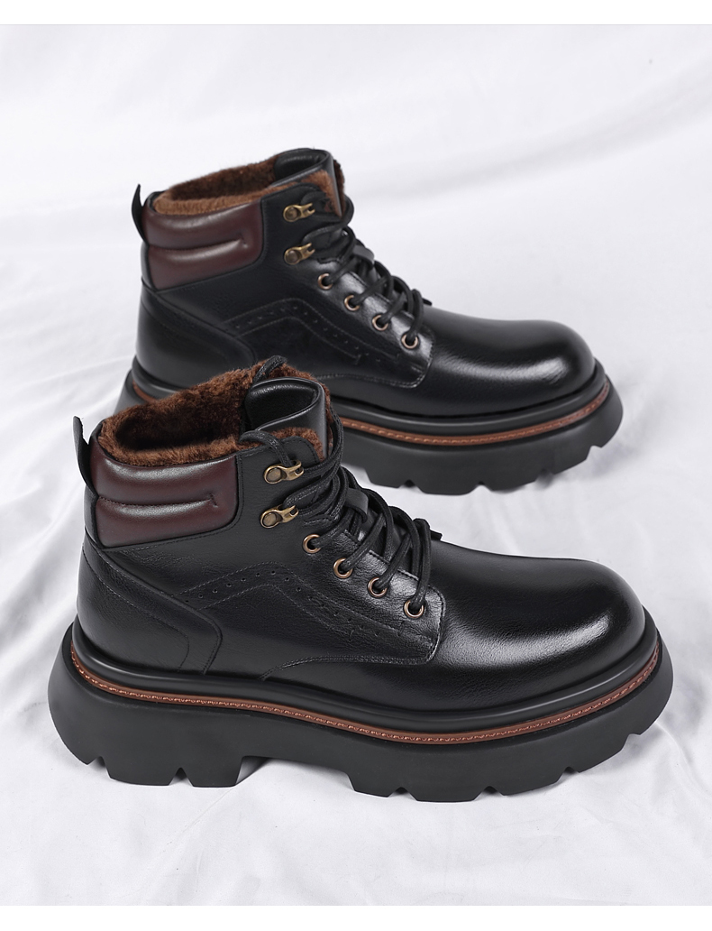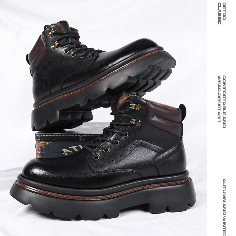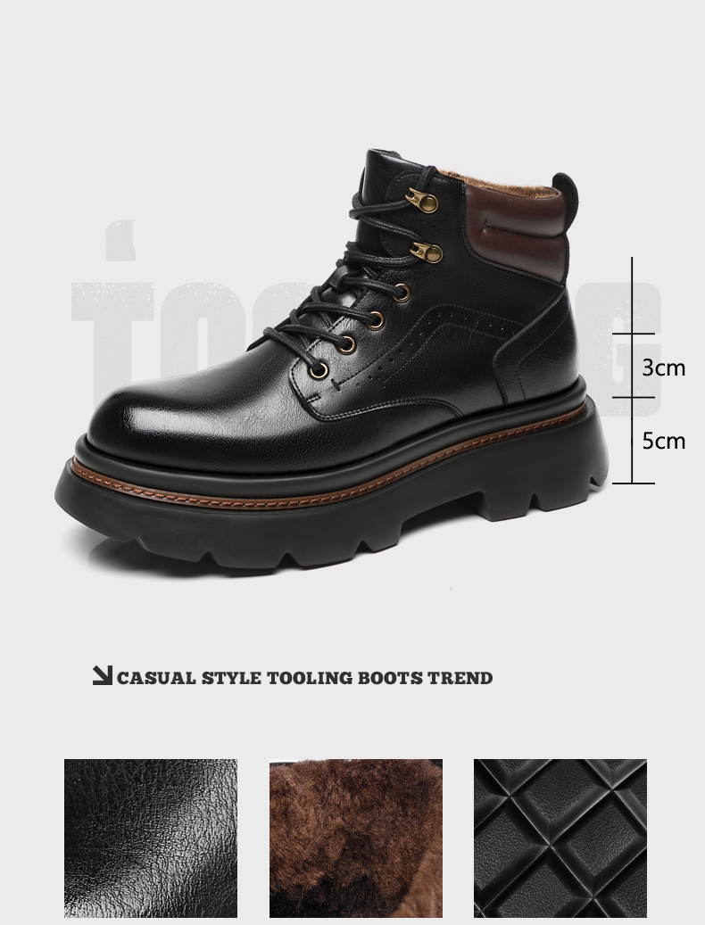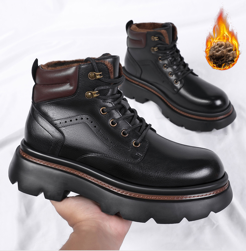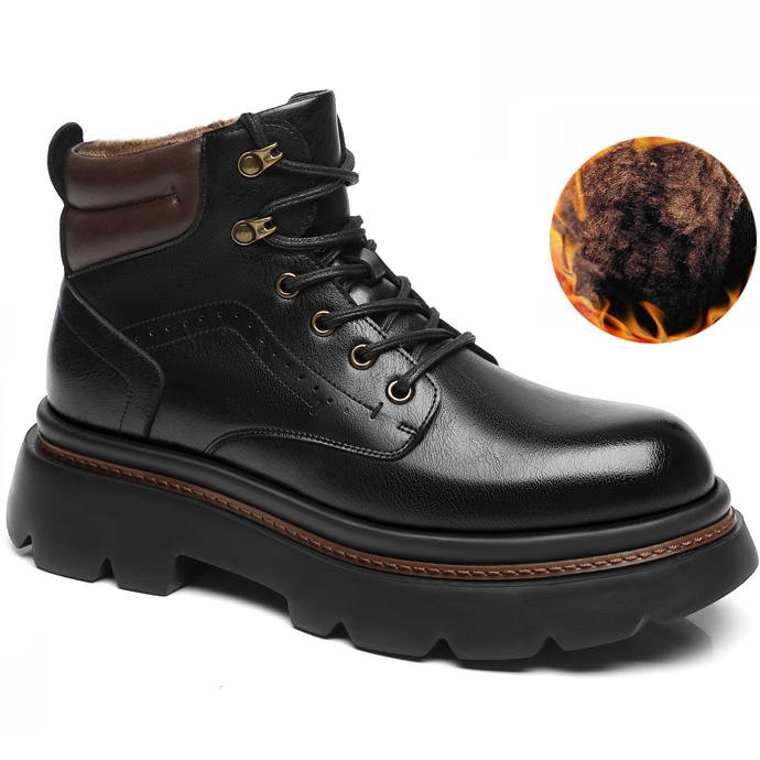 Mens Fur Lined Work Boots 3 Inch Hidden Height Shoes