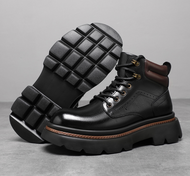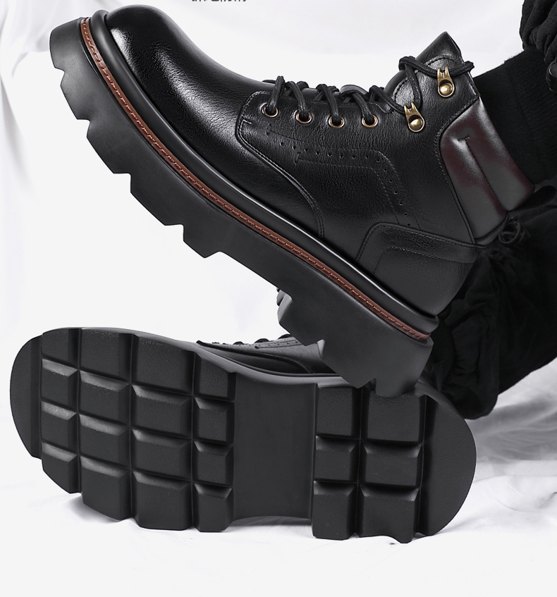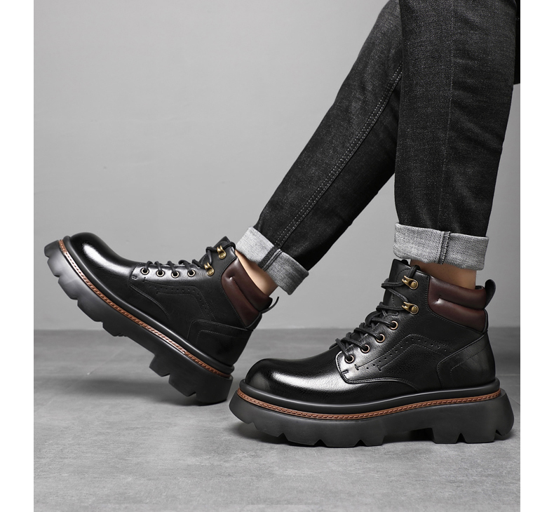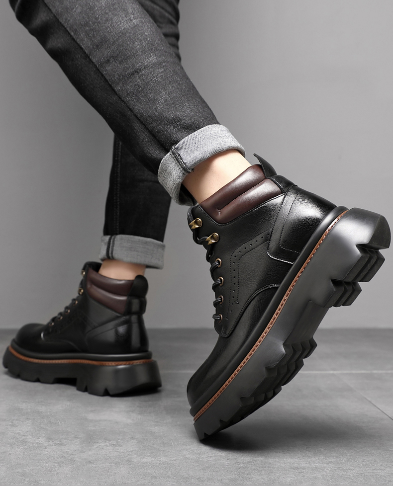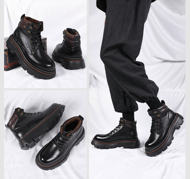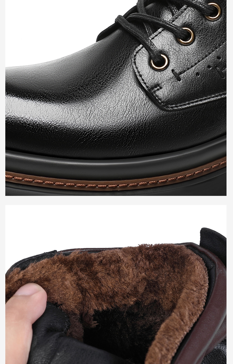 Mens Fur Lined Work Boots 3 Inch Hidden Height Shoes