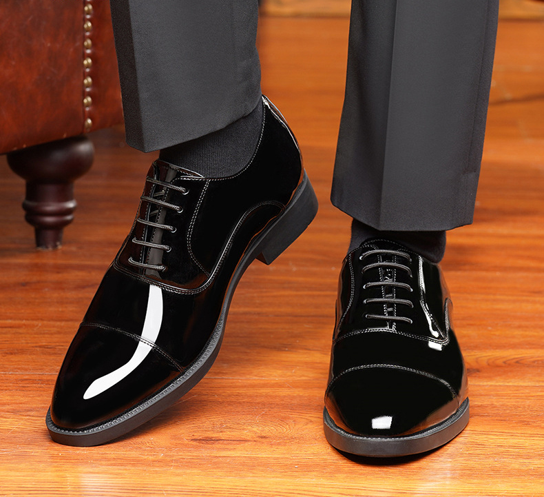 Mens Patent Leather Cap Toe Oxford Shoes Lifts For Height