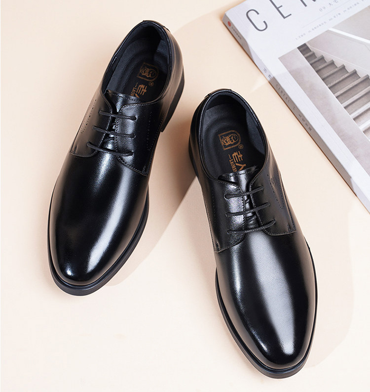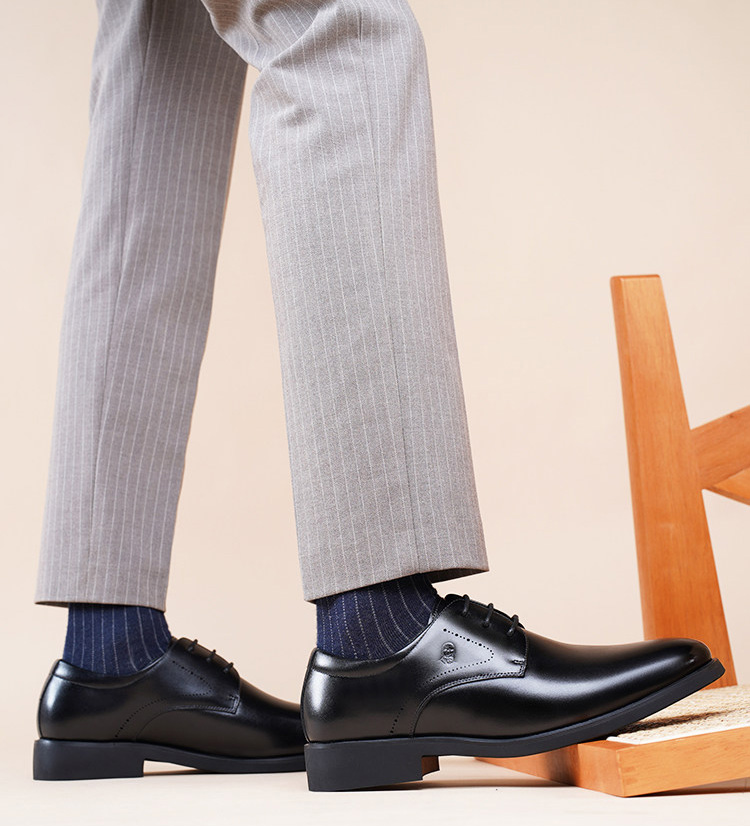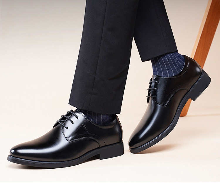 Mens Pointed Toe Black Derby Shoes Height Lifting Shoes