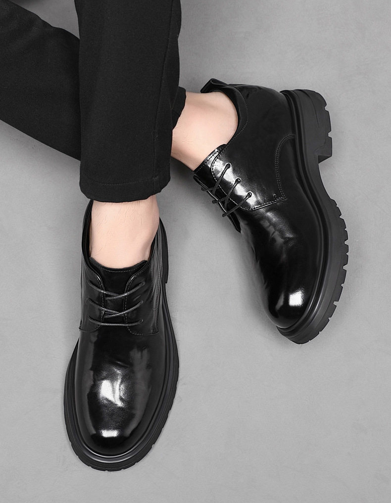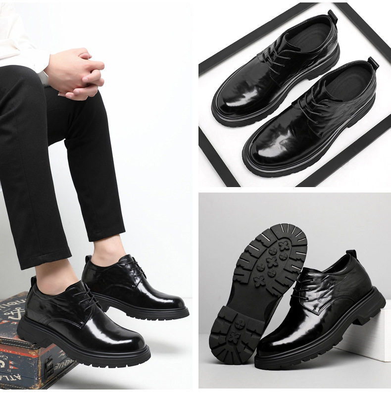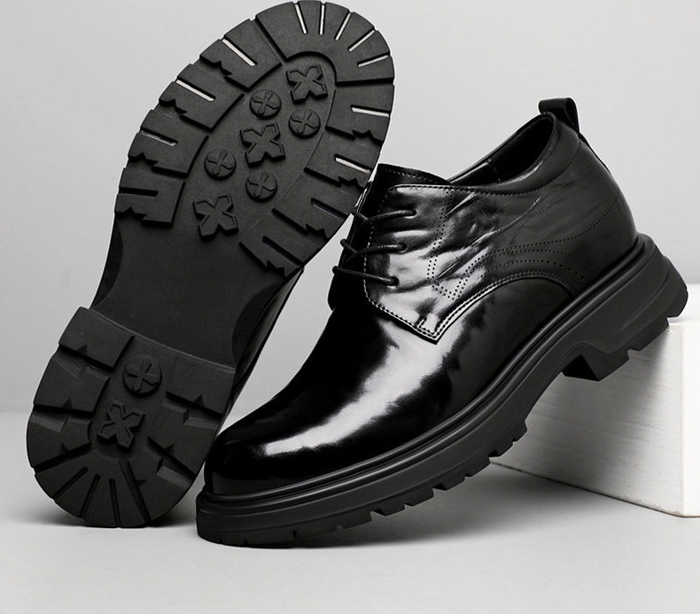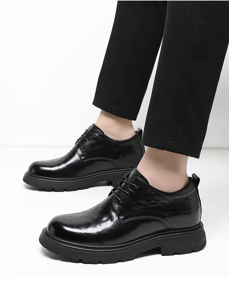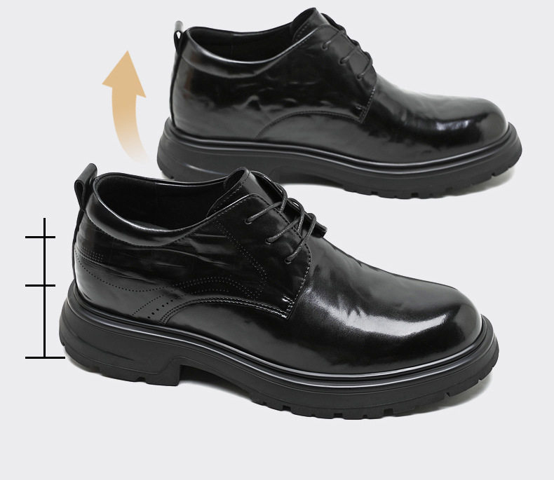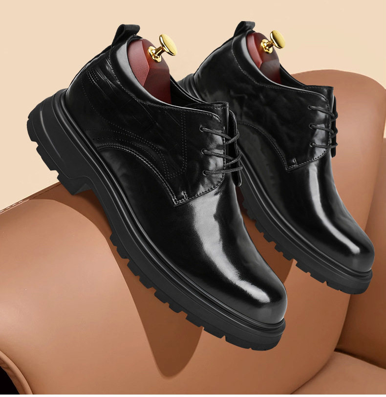 Mens round toe classic business shoes with hidden heels inside, make you taller instantly and enable you to have taller and more handsome figure invisibly.