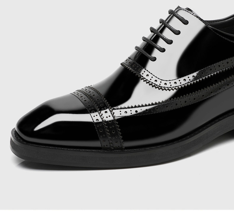 Shiny Black Leather Cap Toe Brogue Oxford Shoes 3 Inch Shoes