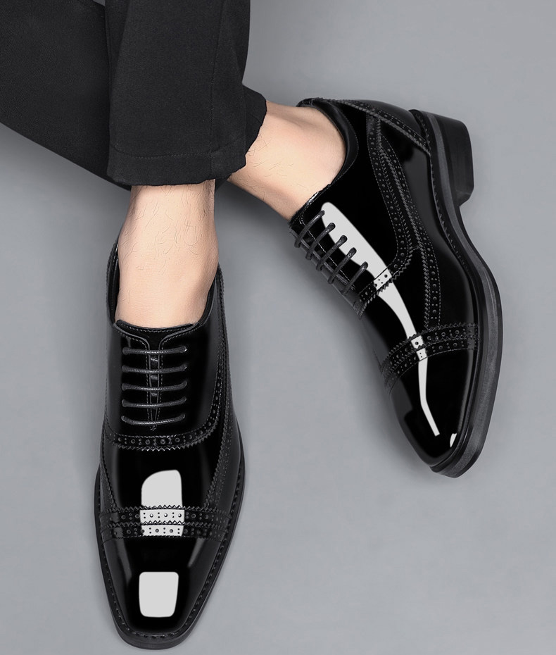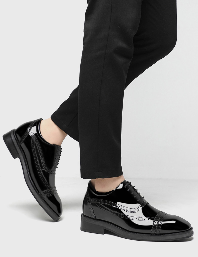 Be the first to review “Shiny Black Leather Cap Toe Brogue Oxford Shoes 3 Inch Shoes” Cancel reply