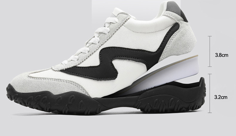 White and Black Low Top Sneakers Height Lifting Shoes with Stripes